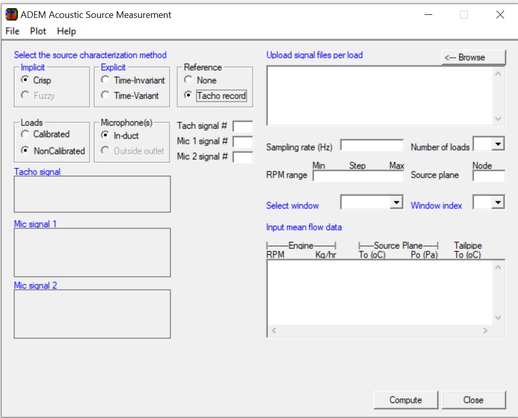 Microphone time-signals recorded in calibrated or non-calibrated multi-load tests can be imported and processed for the calculation of the pressure strength and impedance of one-port sources. The following methods can be implemented from the user interface shown in Figure 1: